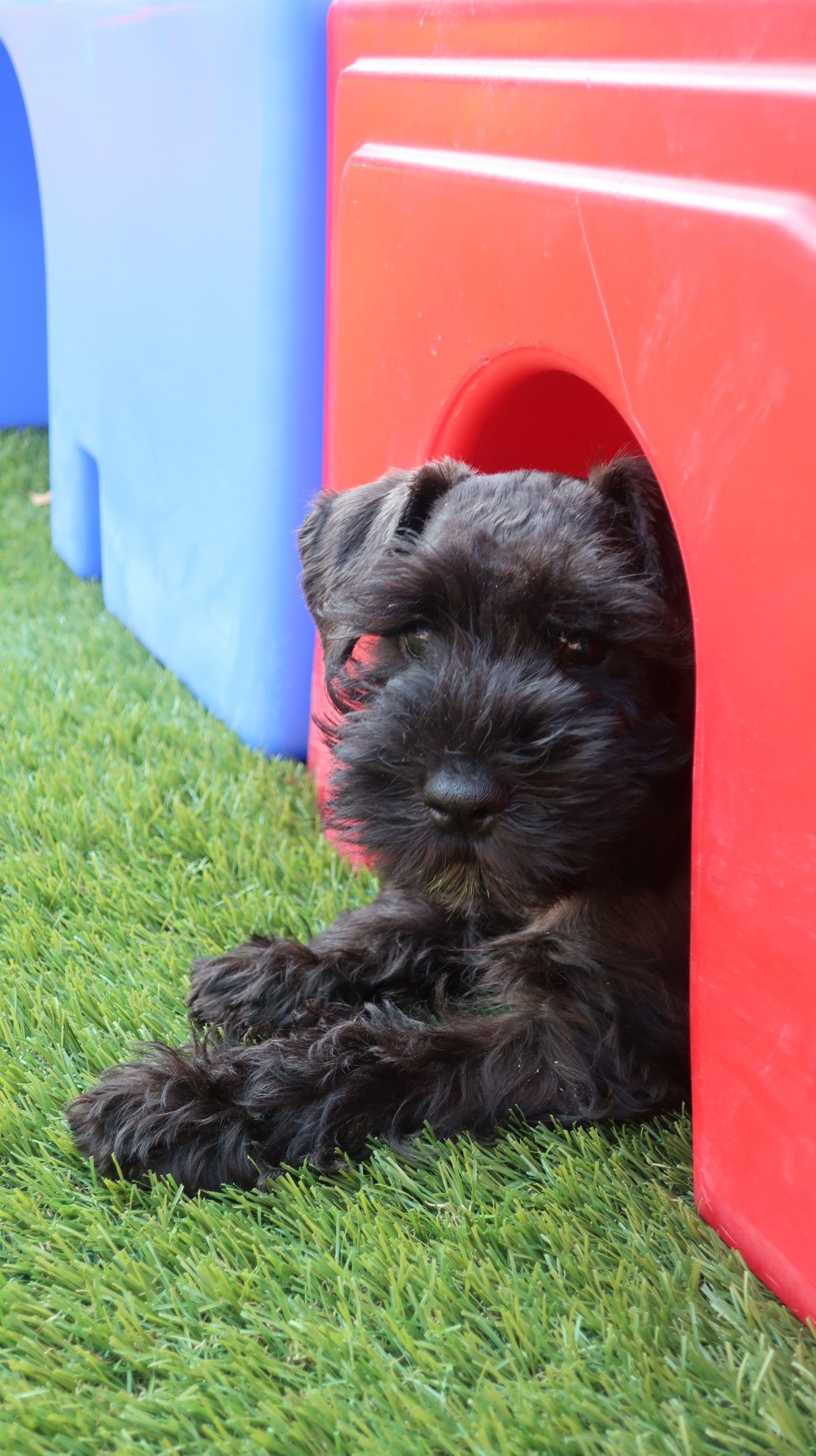 Please fill out our puppy application to join the waitlist. The total price for our puppies is $2000. A $500 deposit (deducted from the total amount) is required to reserve a puppy. This guarantees your place in line and shows that you are committed to providing a home for one of our precious puppies. We do not accept deposits until after puppies are born, and we know that we have the color and sex you requested on your application. You will receive weekly updates, and you are welcome to come visit your new arrival after they reach 6 weeks of age. Starting at 3 days, we begin neurological stimulation with the puppies. This is targeted daily handling which increases brain development and prepares the puppy for training, socialization, grooming, and vet exams. By 6 weeks of age, puppies are eating Bil-Jac Puppy Select formula and are going outside to relieve themselves. After they finish their business outside, they get to go to the playground area for loads of fun and enrichment. When they go home at 8 weeks, they will have received their first vaccination and a vet check. We also use Puppy Culture protocols to build confident, resilient puppies that are ready for more training.
